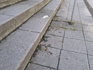 Die Fläche im Bahnhof am unteren Ende der Gleisanlage ist ein schwarzes Loch der Zuständigkeit. Die Fläche in der Zuständigkeit der Deutschen Bahn ist aufgrund eines knappen Budgets der Deutschen Bahn nicht so sauber wie wir es gerne hätten. Es bleibt also an der Stadtgesellschaft hängen und ich arbeite weiter an einer Lösung zusammen mit anderen und halte Euch hier auf dem Laufenden.