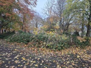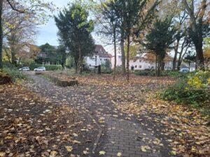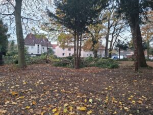 Da kommen sie, die Maschinen zur Rodung. Der Park hinter der Banter Kirche wird ausgeräumt. In der Zeitung stand „wegen nächtlichen Übergriffen“. Wir Nachbarn erinnern da nichts und haben auch nichts gehört.
